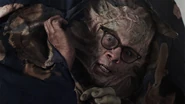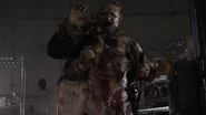 It goes really badly for Doc. He's always had a thing about fingers, but this time, a zombie finger jumps up and goes right into his abdomen. 10K and Sarge jump in to cut it right out. It's gross and insane. As Doc and 10K and Sarge move their way through the facility, they come across a Frankenzombie. The three of them try to battle the Frankenzombie, but to no avail. It’s finally Roberta who saves them when she arrives on the scene, looking for Dr. Edgar Caligari. It turns out; he was trying to graft a working zombie hand onto himself, but was enveloped by zombie cells and became the Frankenzombie. He confirms they're on the right track, he doesn't know how, but he knows Roberta is leading them wisely. He asks them for mercy and they provide it.