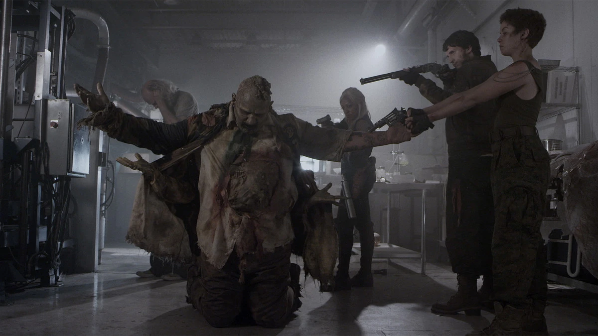Now that they have a new set of wheels, Warren is driving like a woman possessed. And maybe she is. The team is just outside of Eerie, Indiana and with Murphy spiraling out of control, pretty much dying and turning zombie in the backseat; they all arrive at a scientific facility called Bio-Mod. Concerned that he might turn, the gang gets Murphy inside and takes a look at his zombie bite. It doesn't look good. As Doc and 10K consider that they might need to mercy Murphy, Lucy gets an idea, to save her father, she's going to bite him.