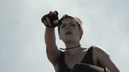 While making their way north, the team find a Z with a bunch of ammo and weapons attached to him. When they decide to take some, they realize he's booby-trapped. Sgt. Lilly is able to diffuse the bomb, and they're loaded up with ammo again. But they’re instantly attacked by a mad Z. Superhero Warren, running with her Z Nation Route 66 shield, has seen a beacon and takes off. Leaving behind the team, she rushes toward it and while climbing, has déjà vu. She's been here before. Maybe wearing a different costume, but this feels like a memory.