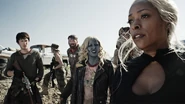 And then a weird moment for Murphy. He’s wounded in the battle and somehow, when he tastes blood, something happens. Is he…turning Z again? The team then comes under attack from a bunch of Enders, who take all of their supplies. When they go to move on, the team realizes that Warren is still leading them. She’s unstoppable, and it’s getting difficult to handle. And so the team stages an intervention to tell Warren that they're not sure she's leading them the right way. She lets them in on her visions of that hellscape - where black ashen rain melts everything that it touches. Ultimately, it's not enough to go on for them and everyone takes a vote – keep going east or head north to Newmerica. The vote passes - they’re bound for Newmerica.