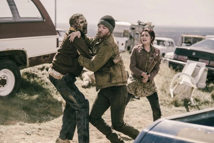 Murphy, meanwhile, strips of his decaying skin and now has a rather shiny silver color. He also has his own posse of zombies and they've all gone looting clothing at a thrift store when he runs afoul of a survivor who wants to take him in for the bounty. The plan goes awry, though, when Cassandra appears and impales him. Cassandra appears to be a half zombie, half human, like Murphy. Murphy tells Cassandra not to give the man mercy, and turns him into his personal zombie assistant.