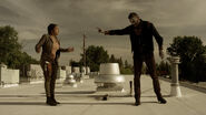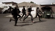 Roberta is saved from a bounty hunter by Vasquez, but not before she sees a vision from her past, of nearly drowning in a pool. Murphy, tired of it all and just wants all the running to stop, jumps off the roof of the hotel and lands in the pool, filled with zombies that break his fall. Addy desperately tries to save Mack from a zombie-infested stairwell, but she’s too late. Mack turns into a zombie and Addy gives him mercy. The man with the suit reveals he has a "Z" tattooed on his hand.
