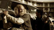When the team continues to try to escort Murphy out of Cheyenne and to the CDC, bounty hunters have descended upon the town, among them a formally dressed Hispanic man carrying a rocket launcher.
