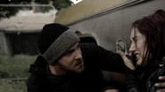 Cassandra is still running around in a bathing suit and a fur coat and she seems to have started attacking people much like the zombies do. The Mexican with the rocket launcher shoots at 10K, who falls and hits his head. He comes back from a light but temporarily deaf. He and Doc run off together to try to find Murphy, who's used his psychokinetic powers to convince a zombie about his size and build to trade clothes and be a decoy. When Vasquez tracks down the decoy, he's attacked by Cassandra.